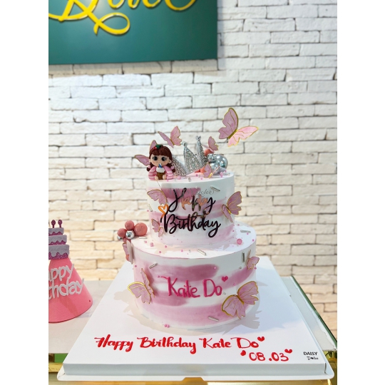 Bánh Tầng-Bé Gái-Vương Miện-Bướm Hồng