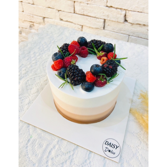 Mô  Tả  Nhân  Bánh : 3 lớp bông lan, 2 lớp mứt và trái cây tươi khách sẽ được chọn 1 trong  các  loại trái cây  hiện  DAISY đang có.