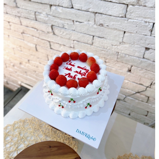 Mô Tả Nhân Bánh : 3 lớp bông lan, 2 lớp mứt và trái cây tươi khách sẽ được chọn 1 trong các loại trái cây hiện DAISY đang có.