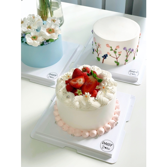 Mô Tả Nhân Bánh : 3 lớp bông lan, 2 lớp mứt và trái cây tươi khách sẽ được chọn 1 trong các loại trái cây hiện DAISY đang có.