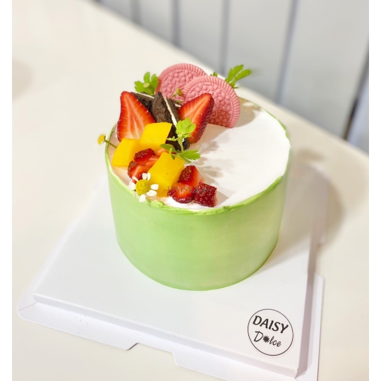Mô  Tả  Nhân  Bánh : 3 lớp  bông lan, 2 lớp  mứt và trái cây tươi khách sẽ được chọn 1 trong  các  loại trái cây  hiện  DAISY đang có.