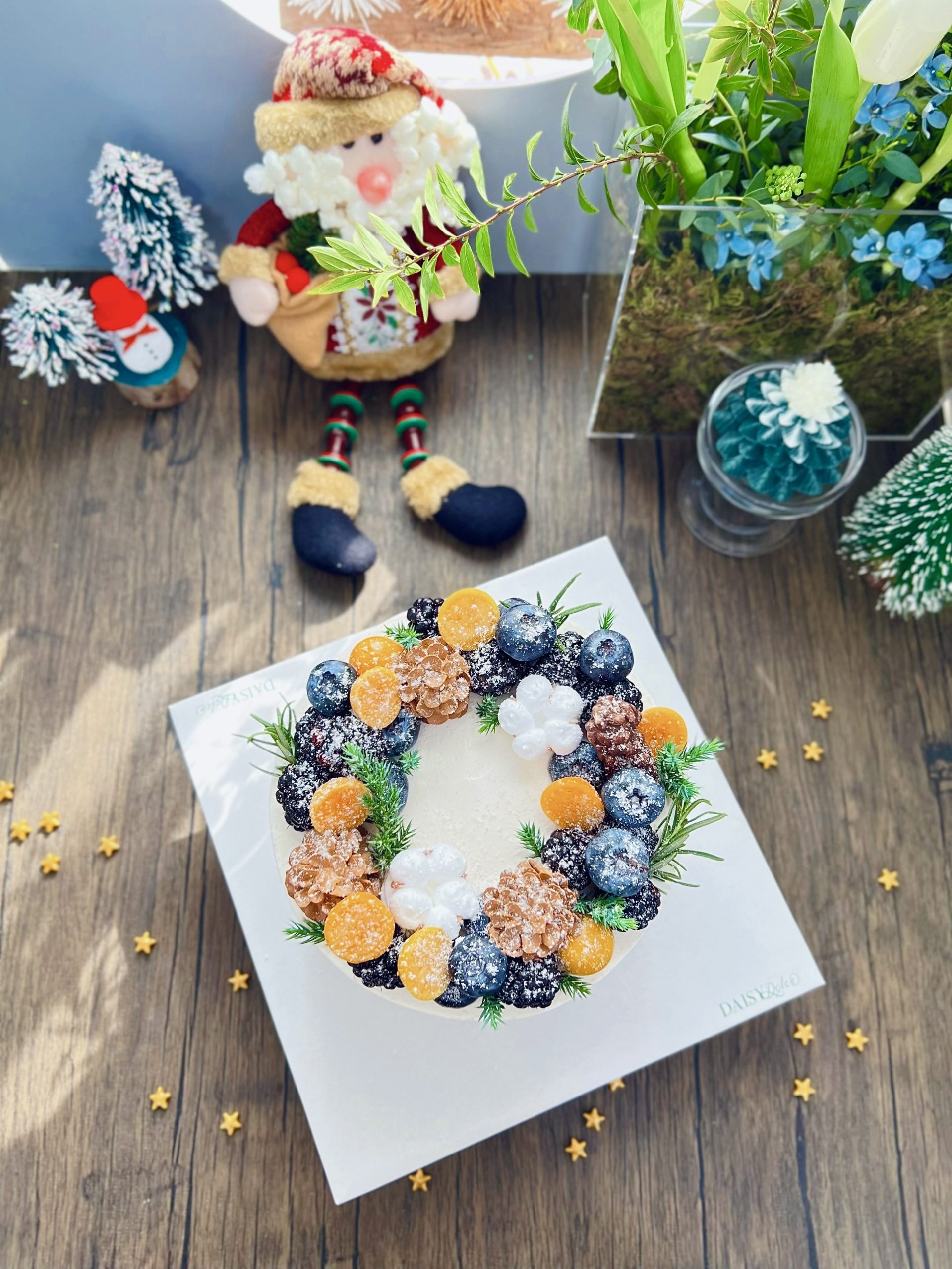 Mô Tả Nhân Bánh : 3 lớp bông lan, 2 lớp mứt và trái cây tươi khách sẽ được chọn 1 trong các loại trái cây hiện DAISY đang có.