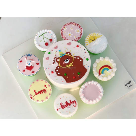 Giá SP : bánh kem size 12cm và 8 cupcake giá tương ứng là 490.000đ. Size lớn hơn vui lòng liên hệ DAISY để được tư vấn.
